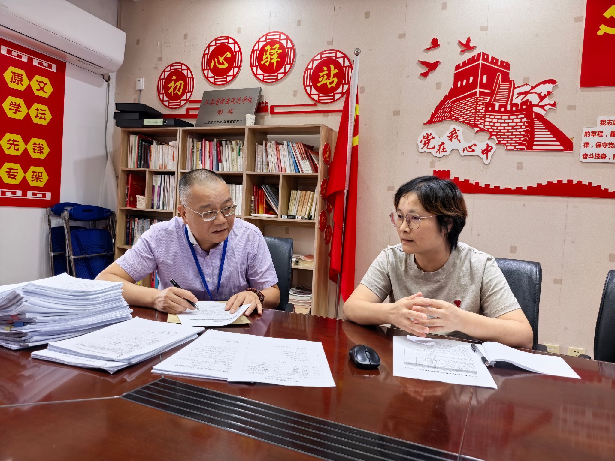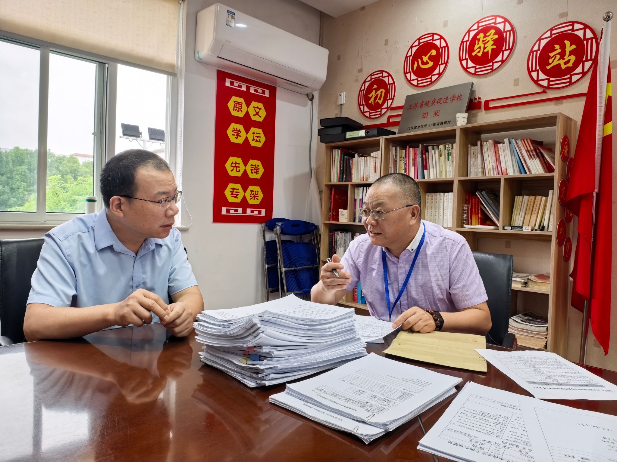首先督学通过现场交流和实地查阅资料,检查了学校心理健康教育工作的档案资料,了解了学校心理健康教育情况。学校德育处主任金岚老师从心理健康档案的建立,再到对重点人员的关心关爱以及校园主题活动工作开展情况进行了汇报。