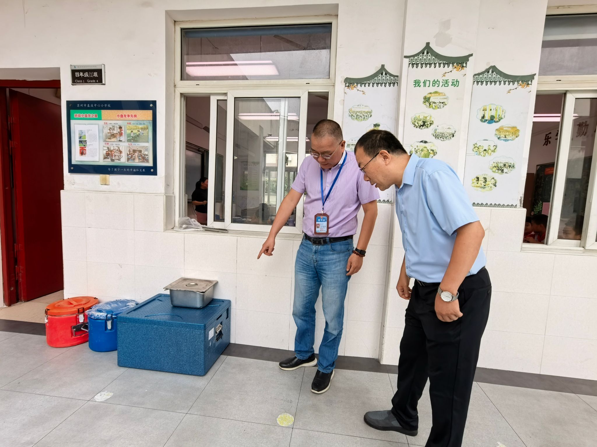 学校的午餐配送情况也时时让督学牵挂,午餐的质量、温度、放置、工作人员状态等情况督学一一详细了解:配送车辆是否准时到校,配送过程是否干净有序,午餐是否新鲜干净且适时适温,配餐间冰箱中的食品样本留样是否及时,教室门口的保温餐箱和汤桶放置是否规范,工作人员配餐过程是否全程穿戴清洁工作衣帽、规范佩戴口罩,是否持证上岗等情况重点关注督查,经过实际查访,督学对配餐的配送流程、学校的分餐制度管理以及严格落实校长陪餐制给予了充分的肯定,同时也针对菜品种类、食品的安全卫生工作提出了相应的指导和建议。督学对于学校在午餐管理、饮水设备的消毒等方面的扎实工作给予了充分的肯定。