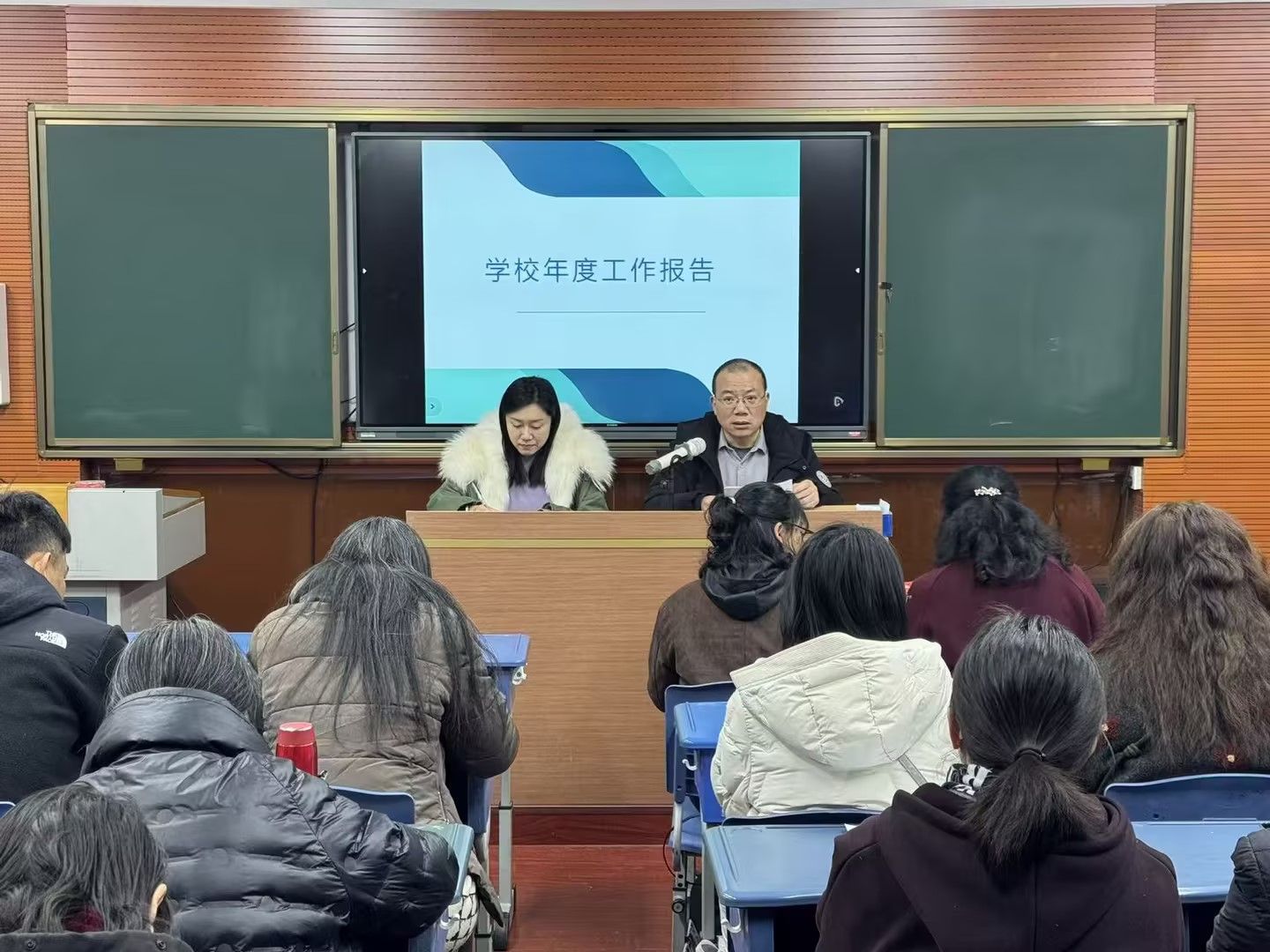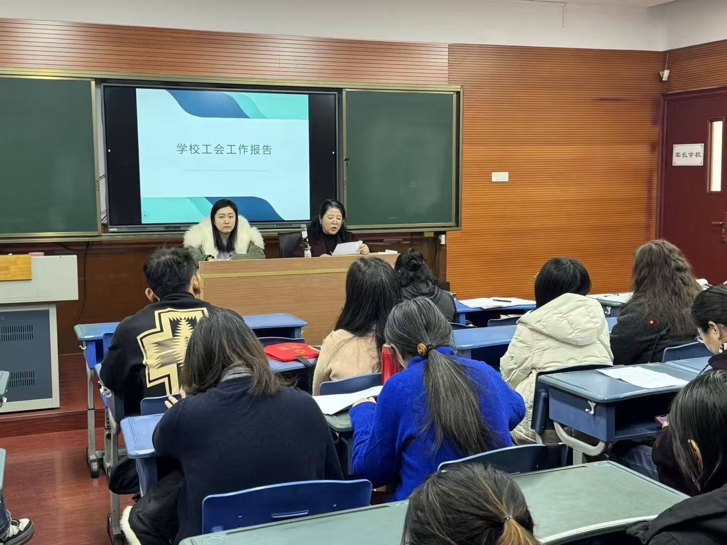 大会由工会副主席张梦莱老师致开幕词,大会一开始卞校长从多方面、各维度对校2025年度工作进行述职,报告回顾了过去的工作,明确了2026年学校工作思路,勉励全体教职工凝心聚力,砥砺奋进,跃升百年老校的高质量特色发展,真正做到办好人民满意的教育。接着朱文瑾副校长宣读了工会年度工作报告,学校会计袁娴作了财务报告,报告在全体代表鼓掌声中一致获得通过。
