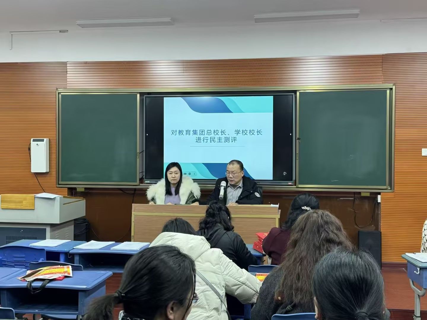 在热烈祥和的气氛中,全体教师民主测评集团总校长,学校校长和工会工作,整个测评过程流畅、公正、透明,全体与会人员严格按照测评程序对干部进行了民主评议,在校长﹑工会主席和监票员的共同见证下完成了民主测评工作。